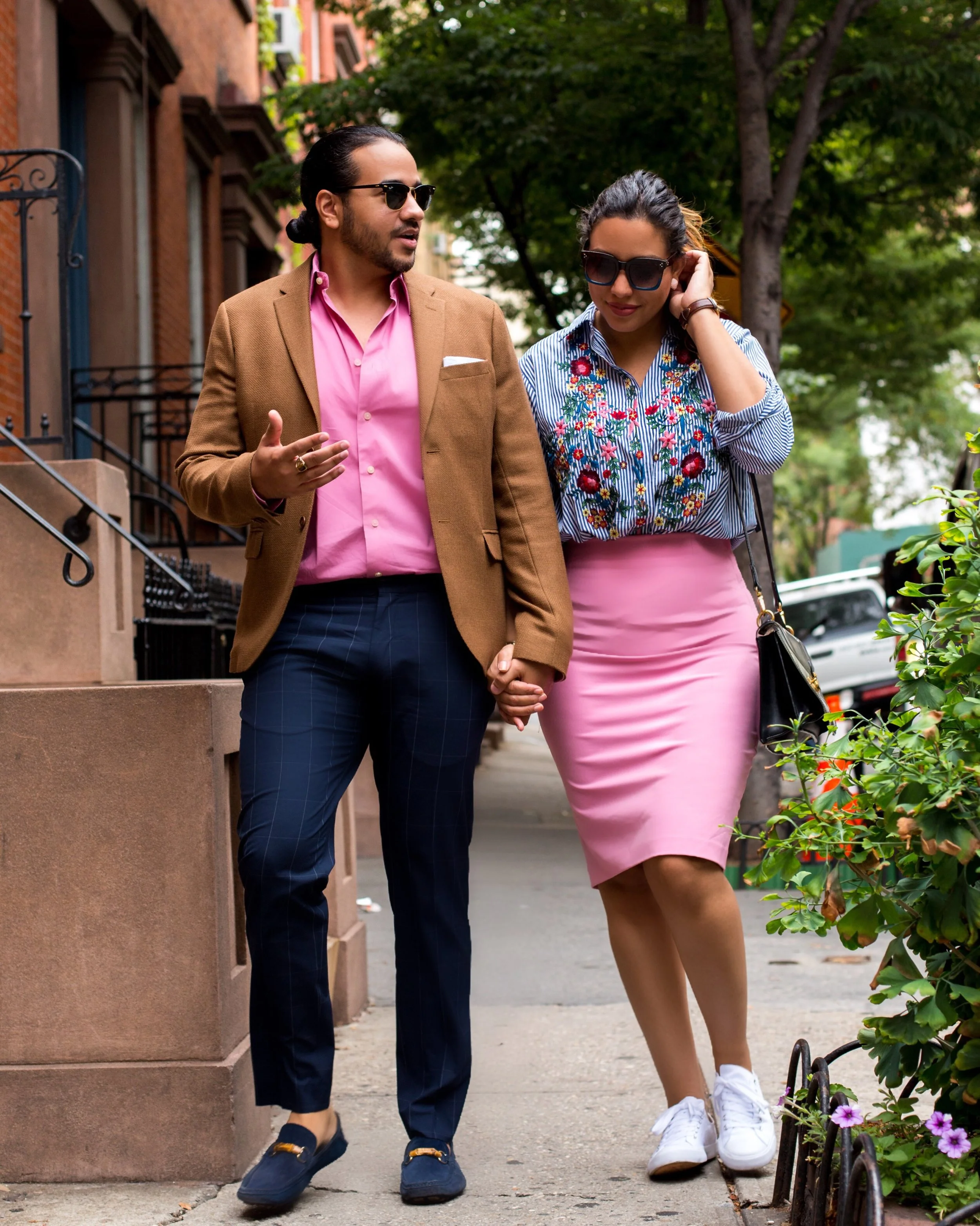 Winston: Definitivamente el verano trae consigo una paleta de colores más brillante al resto de las temporadas pero el hecho de los colores temporadas no quiere decir que debamos usarlos todo juntos, para nosotros los caballeros lo ideal es que mezclemos colores vivos con otros un tanto más opacos o hasta neutrales, claro sin caer en lo aburrido, no tengas miedo con los colores, nunca he tenido diferencia entre ellos ni los he dividido por género, así que para despedir el cálido verano una camisa rosada combinada con pantalones y mocasines azul marino son una buena opción, por su puesto en mi estilo clásico nunca va a faltar un blazer en este caso en tono neutral brown para crear armonía en todo el look.