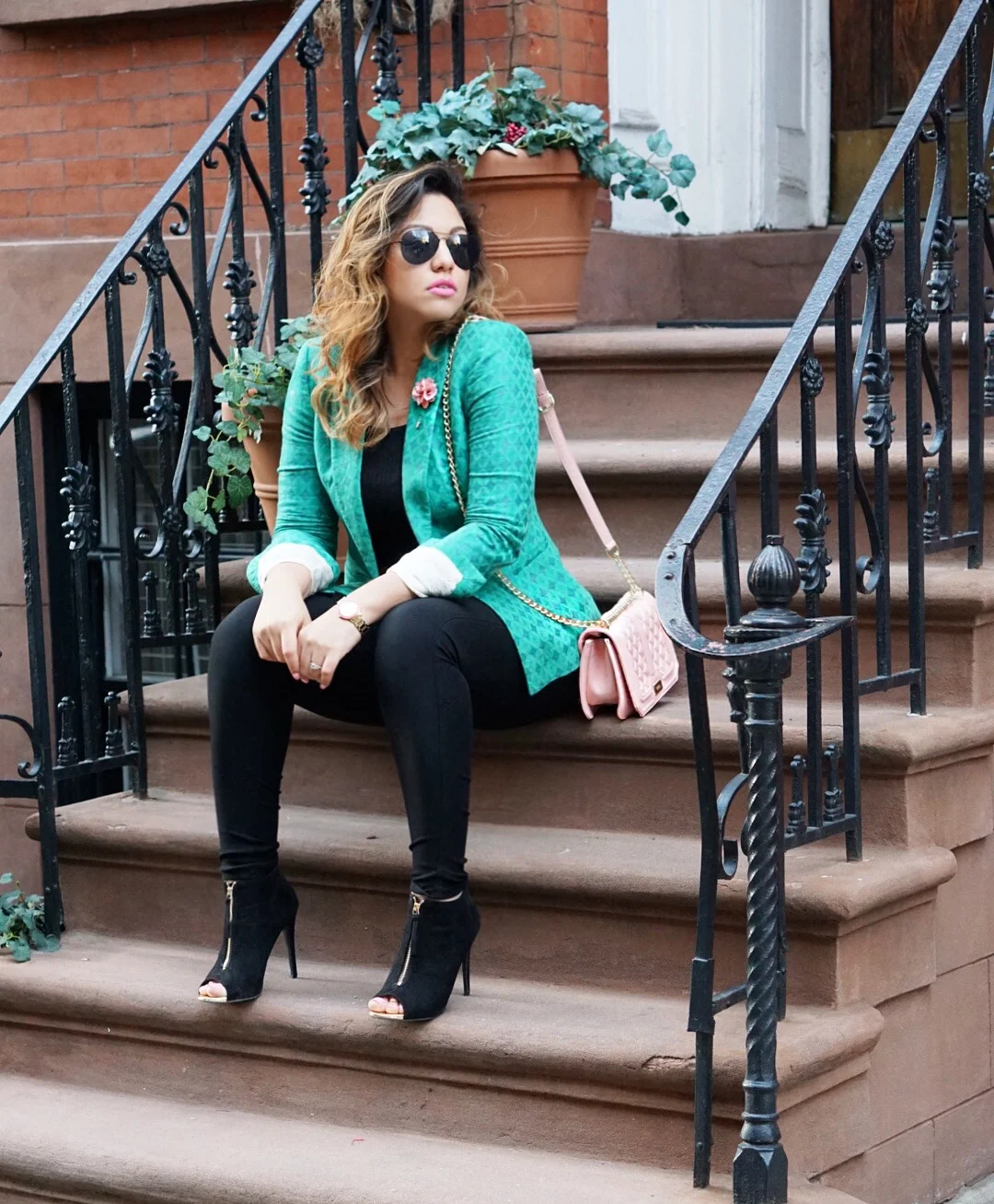 En si el negro funciona como una base al ser un color neutral, pero por costumbre tendemos a mezclarlo con otros colores fuertes como el rojo o el dorado, y en ocasiones con el binomio perfecto o sea, blanco y negro me puse a pensar en eso y entonces dije: Rox pero si la cuestión en si no esta en la base, o sea, el negro sino en los colores complementarios, para llevarlo en primavera solo necesitas cambiar los colores y listo… Me sentí como una gurú de la colorimetría, lol, bueno ya en serio, decidí llevar un look al mejor estilo de top model off duty (crop top, leggins y botines negros), que ni Cara Delevigne ¿El secreto? Spring colors; al combinar esta base con un blazer verde aguamar y llevar un boy bag en rosa cuarzo creé un balance en donde el protagonismo lo toman las tonalidades mas claras, esta formula funciona con todos los colores neutrales, la idea de este outfit es mostrar que el éxito de un look solo depende nuestra creatividad, no hay limites, llevar negro en primavera si es posible, y en cualquier otra temporada en el día, bien decía Oscar de la Renta ‘’La elegancia esta en el manejo del color’’