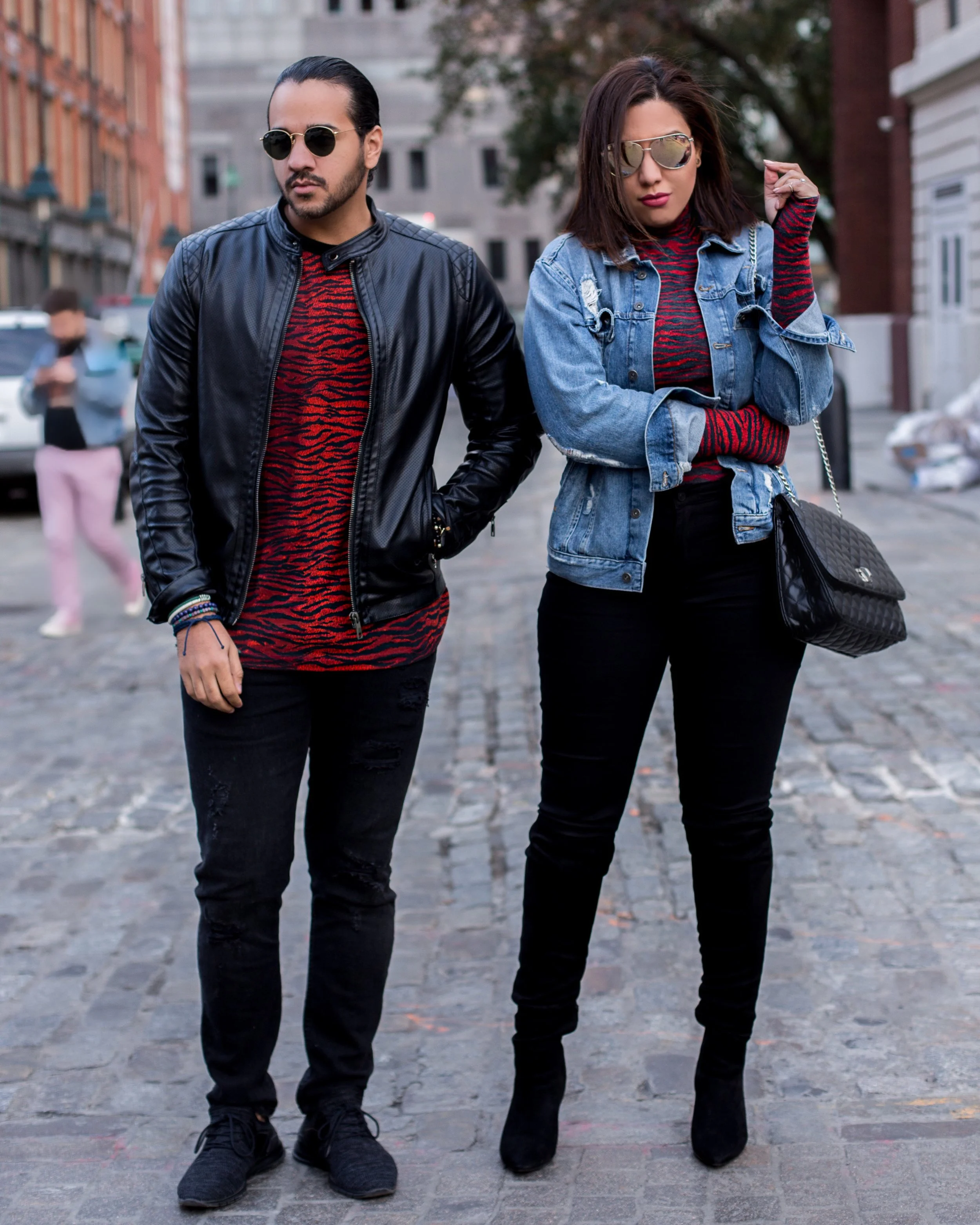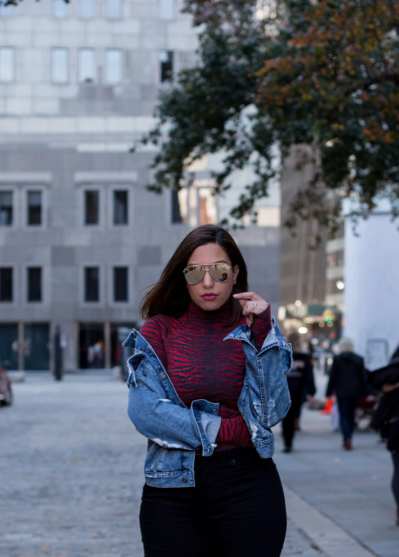 Nosotros optamos por estos tops con animal print de zebra en rojo y negro, mezclándolo con denim and black, para evocar un look desafiante de invierno, si decides utilizar estampados tan llamativos siempre es bueno que sigas los siguientes consejos: