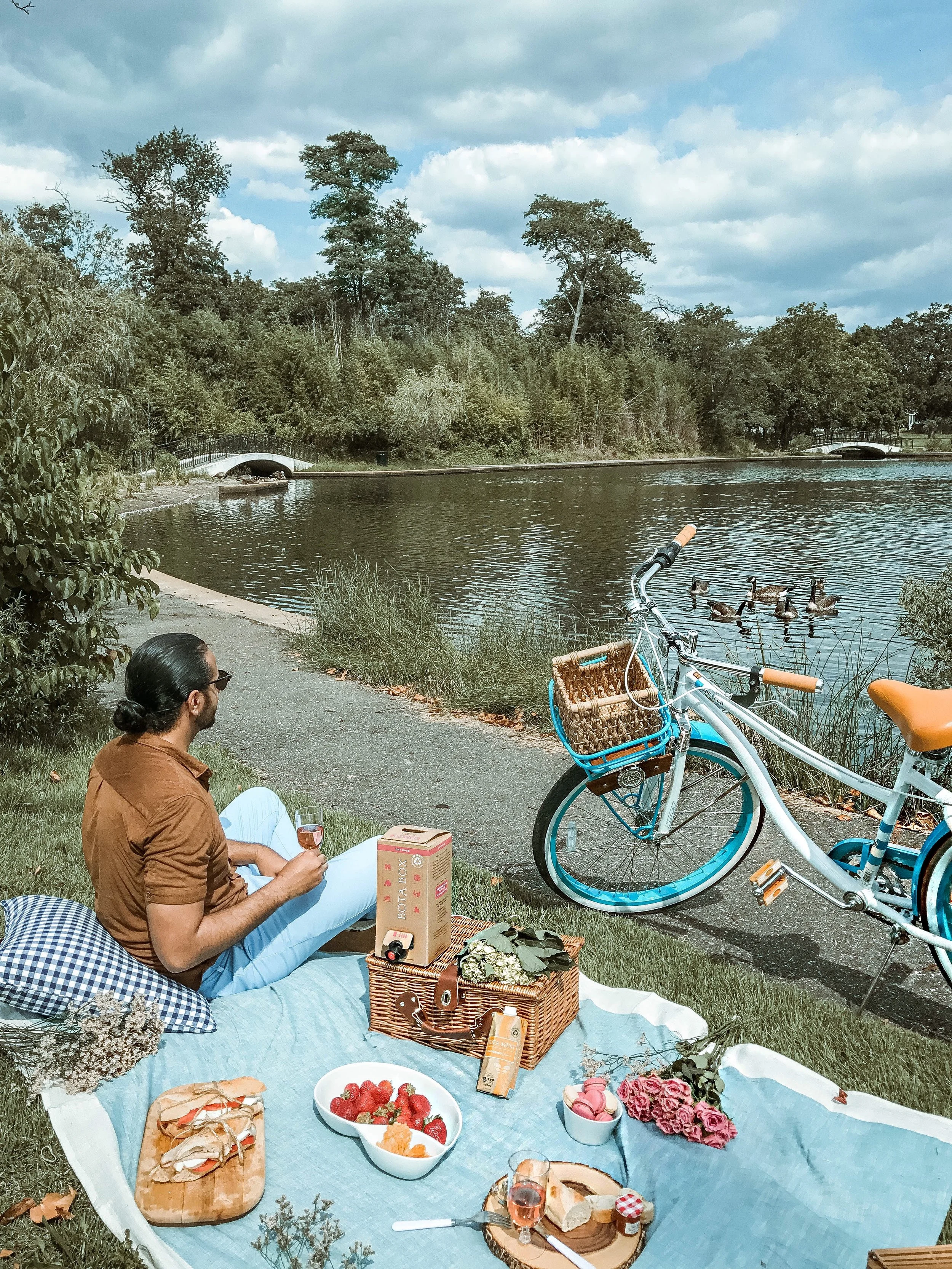 For this piece of content, we wanted to partner with a brand that its whole aesthetic and core values revolve around outdoors, caring for our environment and travel-friendly. After some research, we reached out to Bota Box Wines because we believed they were the perfect choice for this lakeside picnic and they were delighted to collaborate with us and our lakeside picnic idea.