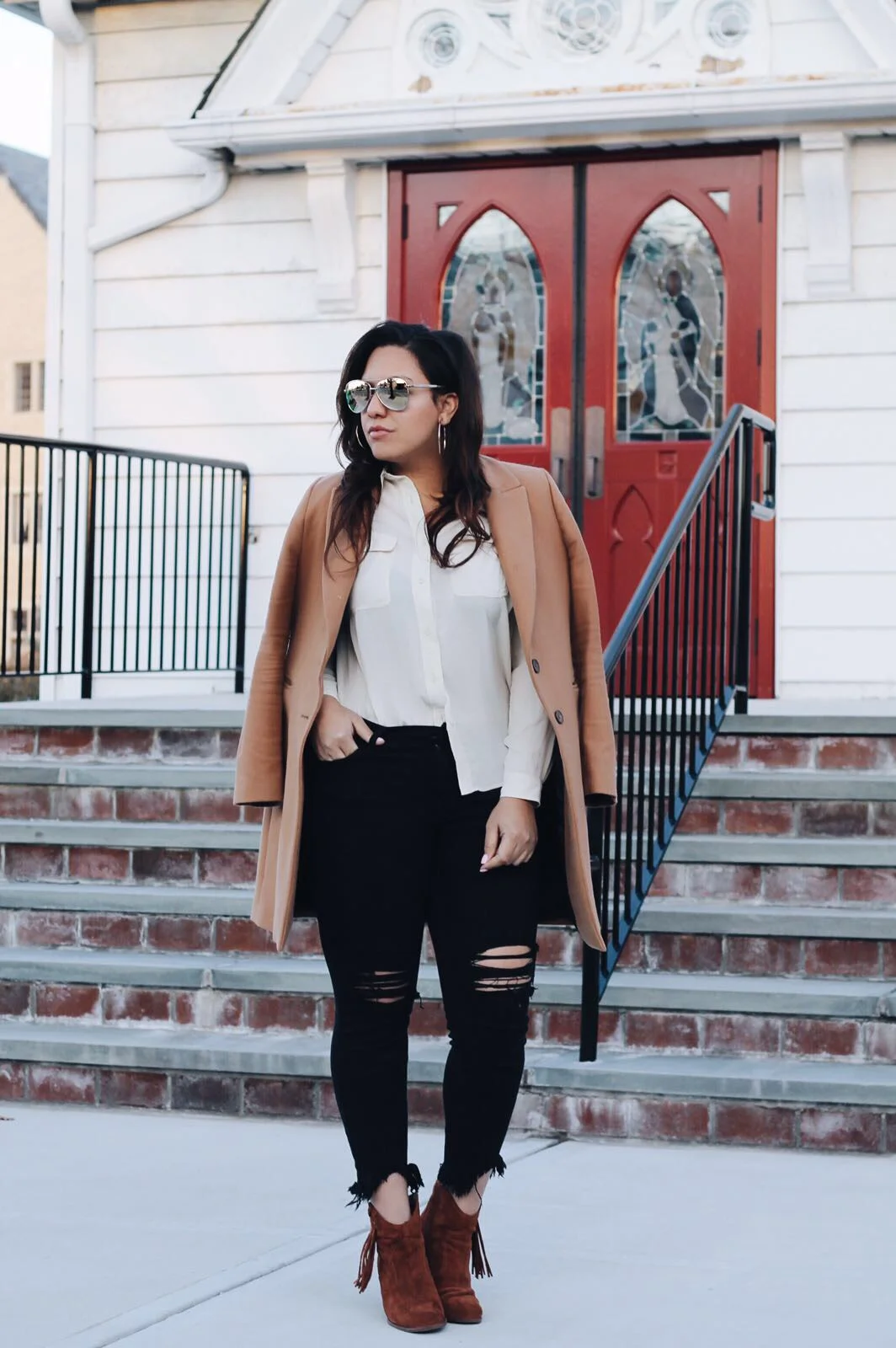 Another cool piece from the Uniqlo Spring collection is the Drape washed work shirt. This piece is inspired by menswear and their workwear. This shirts has a finish which gives the piece a wrinkle look and it comes in several colors such as the khaki i'm wearing, smoky pink and navy which all help compliment the neutrals. i love this piece because it can be use as a basic in your wardrobe and it easily combine with casual pants, vintage distressed jeans or maybe even some cargo to give it that utility chic look.