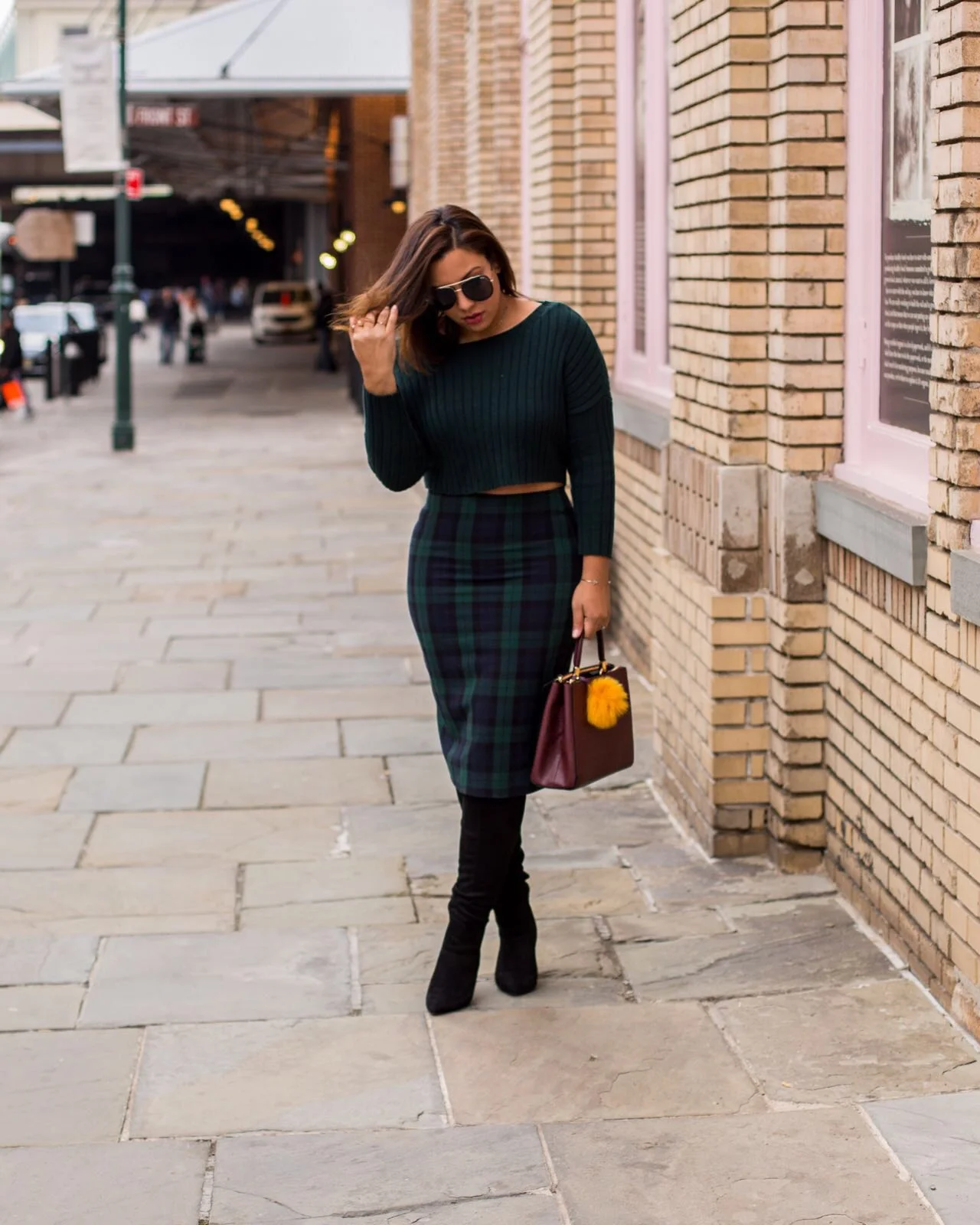 Rosanna: ya lo había llevado hace un tiempo, sin embargo en esta oportunidad quise irme por una onda distinta; llevar el patrón en la falda, una falda lápiz, que ustedes saben que soy amante a ellas, acompañada de un crop de invierno y claro, el calzado de tendencia; botas súper altas en color negro, el secreto para llevar este tipo de estampado si eres más orientada a la onda delicada y femenina es tratar de implementarlo en piezas que evoquen feminidad así hacemos el balance correcto. Cuando decidas comprar una pieza con este print asegúrate que sea funcional; ya me verán en Spring con esta misma falda en otro look.