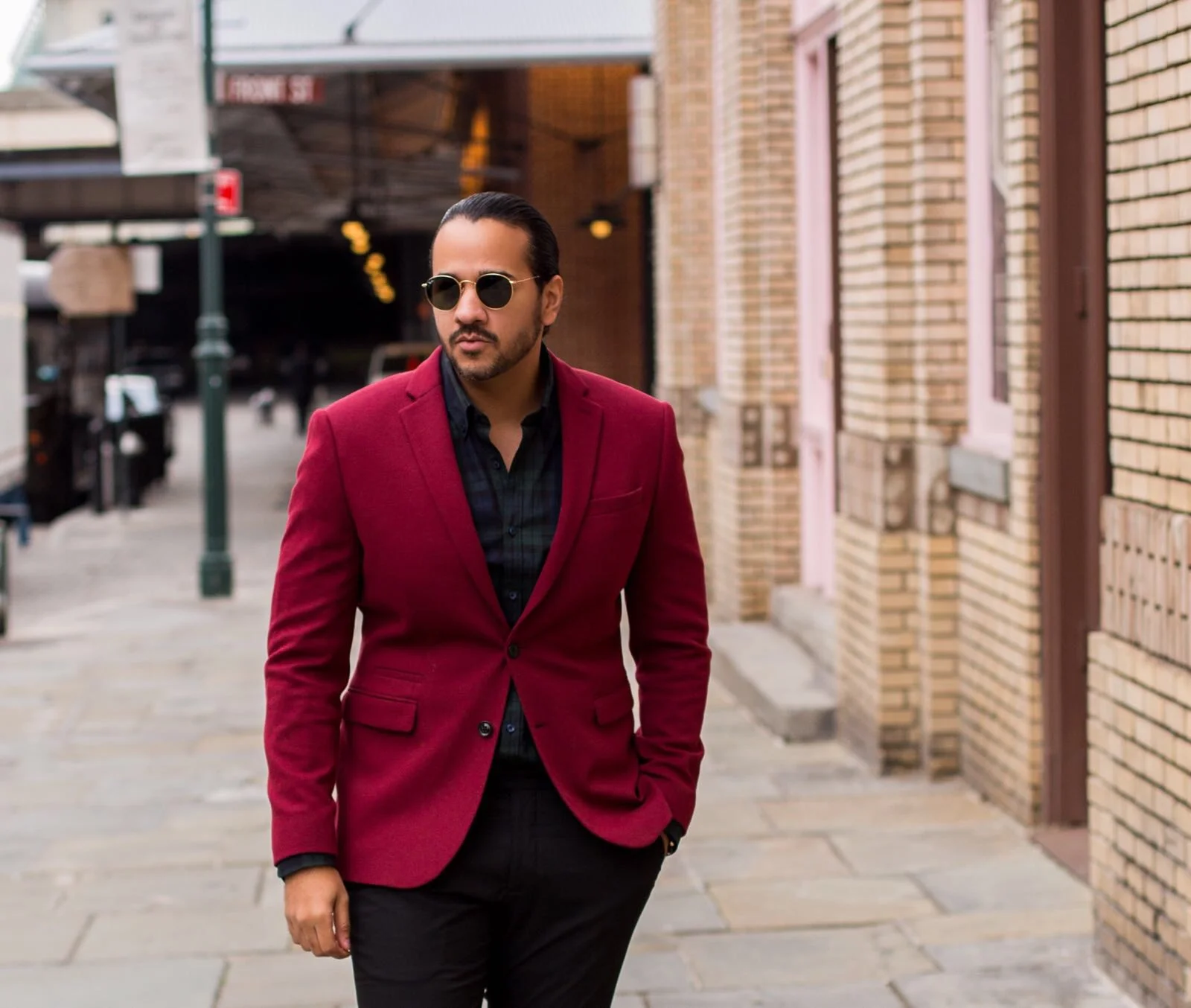 Winston: Definitivamente me siento identificado con la simbología de estos cuadros, y es que específicamente esta variante en color verde, era únicamente utilizado por el rey o el hijo del rey, decidí combinarlo con un pantalón negro en corte chino y un blazer en rojo (clásico de la temporada festiva) incluyendo los cuadros escoceses en la camisa, que perfectamente luego puede ayudarnos a crear un look más casual.