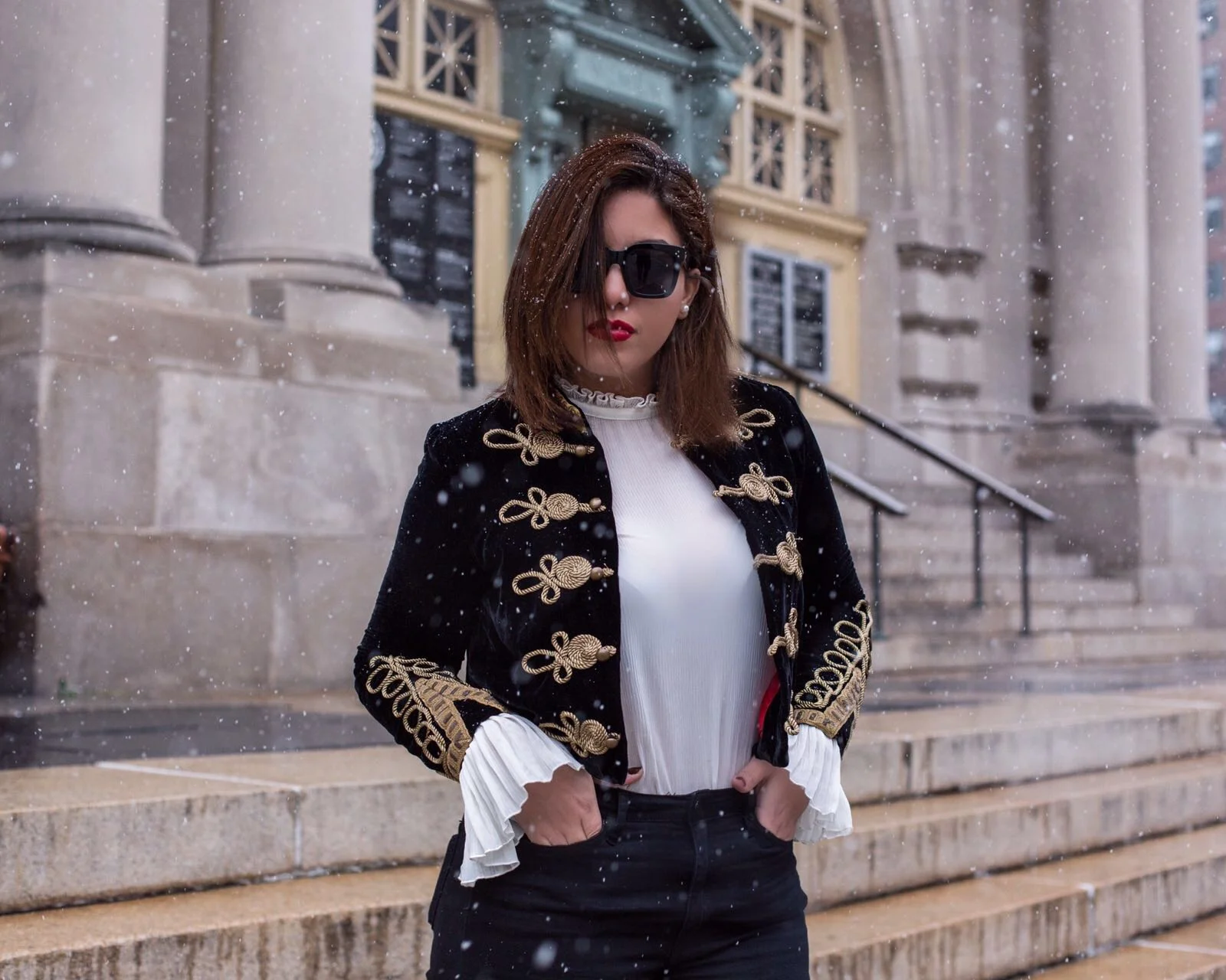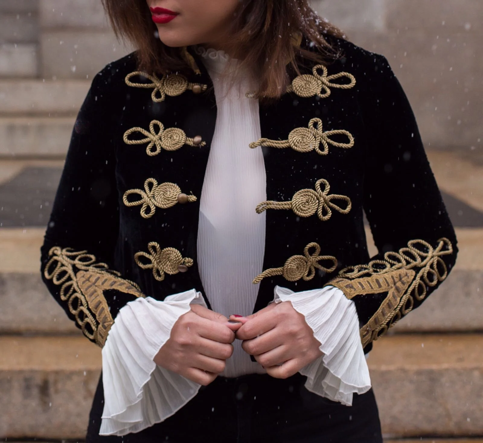 - Si tu camisa o tu blazer es de estilo victoriano y tiene muchos detalles entonces combínalo con piezas más simples como un skinny jeans en tonalidad oscura.