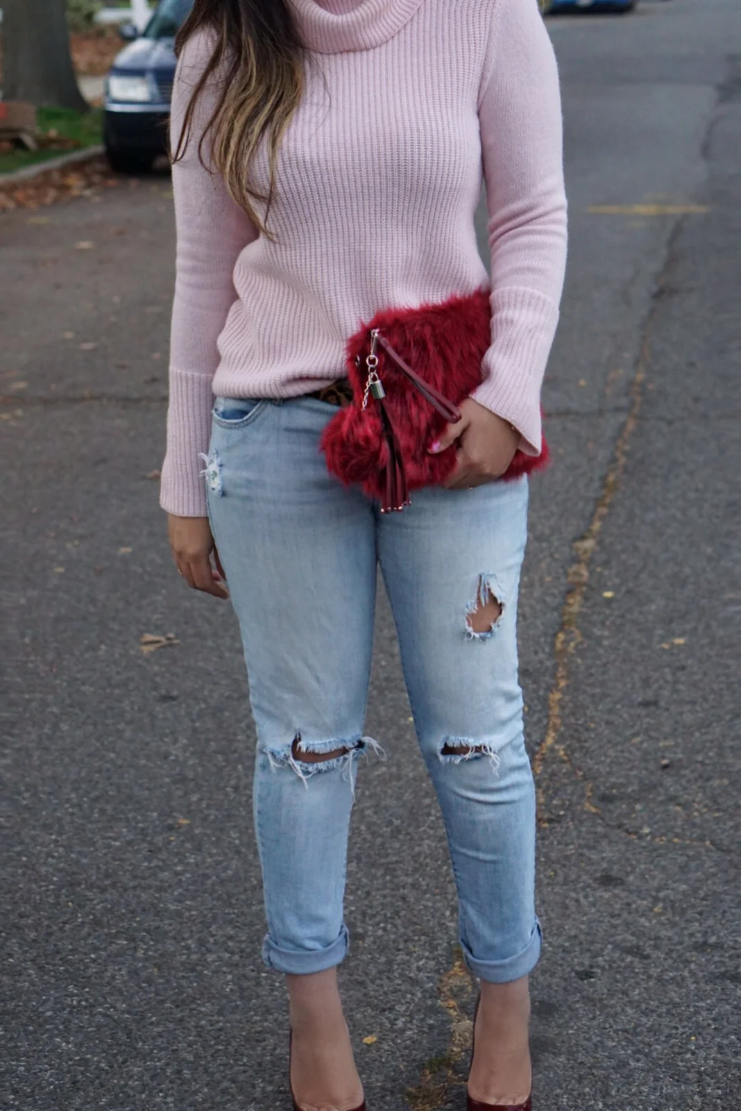 En este caso decidí retomar este look pero cambiándole un poco el estilo, algo más casual ripped jeans en light blue que hace un súper contraste con el vintage pink de mi suéter, un poco de textura no cae mal verdad? Bolso marsala y stilettos que siempre van bien con este tipo de jeans, no podía dejar pasar esta oportunidad para usar esta correa en animal print de leopardo. Se los confieso para mí esta combinación y el animal print de leopardo fueron creados el uno para el otro.