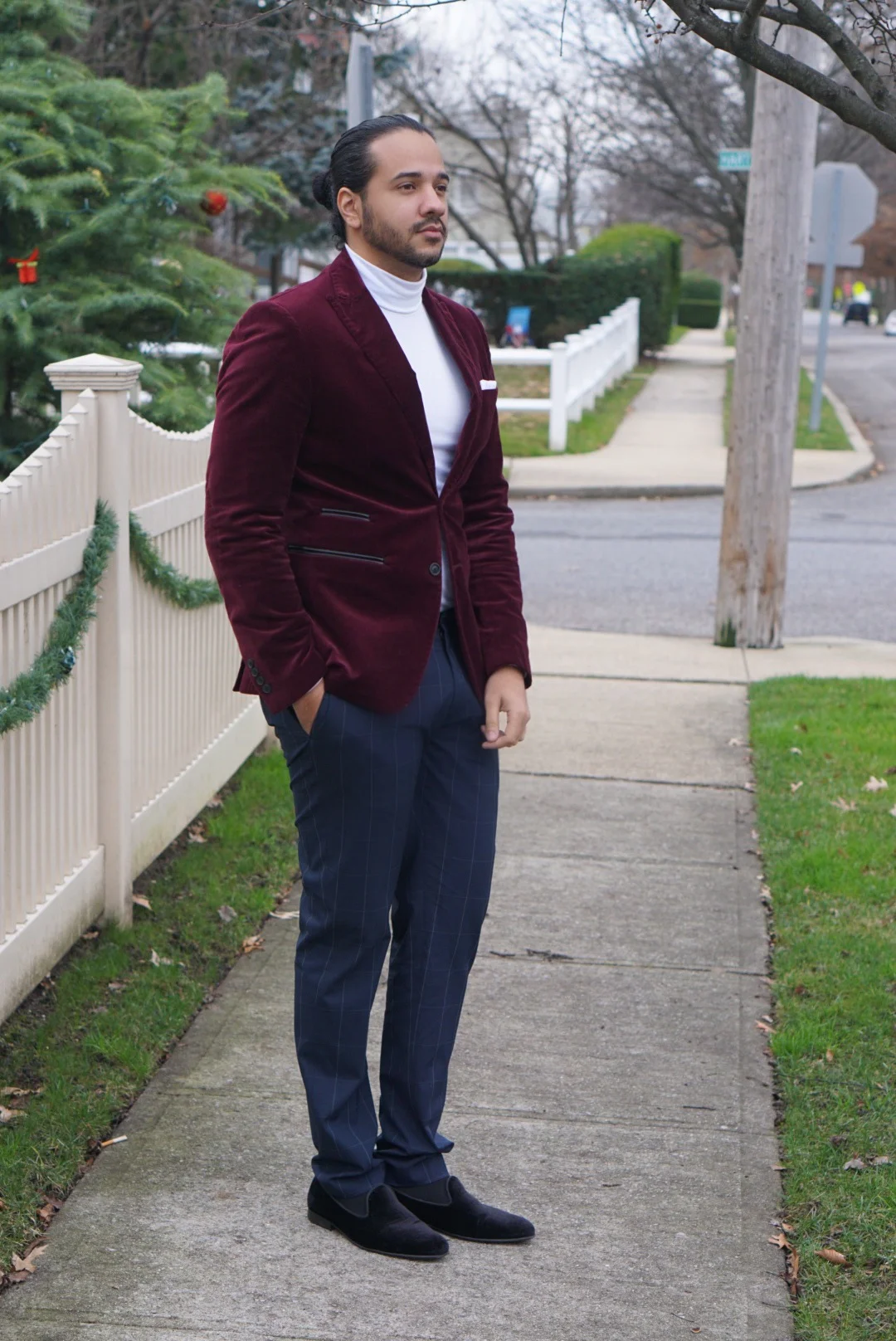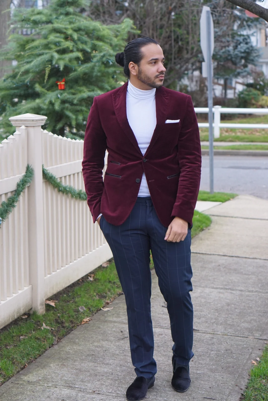 We are just days way from starting a new year, In 2016 we expect considerable positive energy, as Men’s fashion is concern remember there are trends that keep coming back, as in the case of the velvet blazer: This fashion item which is the feature piece of this look is a classic for the new year festivities, the color and material that's made from makes this piece represent power, imperialism and royalty. Additionally, it was used for drapery and baroque furniture during the monarchy periods of history.