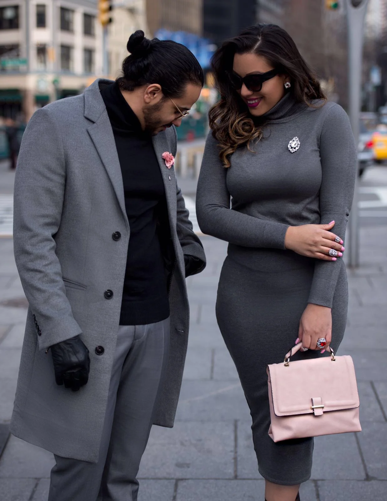 Well, that was a short introduction for our inspiration of today’s looks. As seen in the photos we were partly influenced by dark hues and monochromatic aesthetics. The inspiration came about, after the realization the New Yorkers tend to wear essentially all dark/black attires during the winter months, these effectively trickles down from wall street suits to street style urban outfits. To that end, and with that notion in mind, we remained true to the essence of the city and developed our own monochromatic dark ensembles paying homage to New Yorkers and their city.