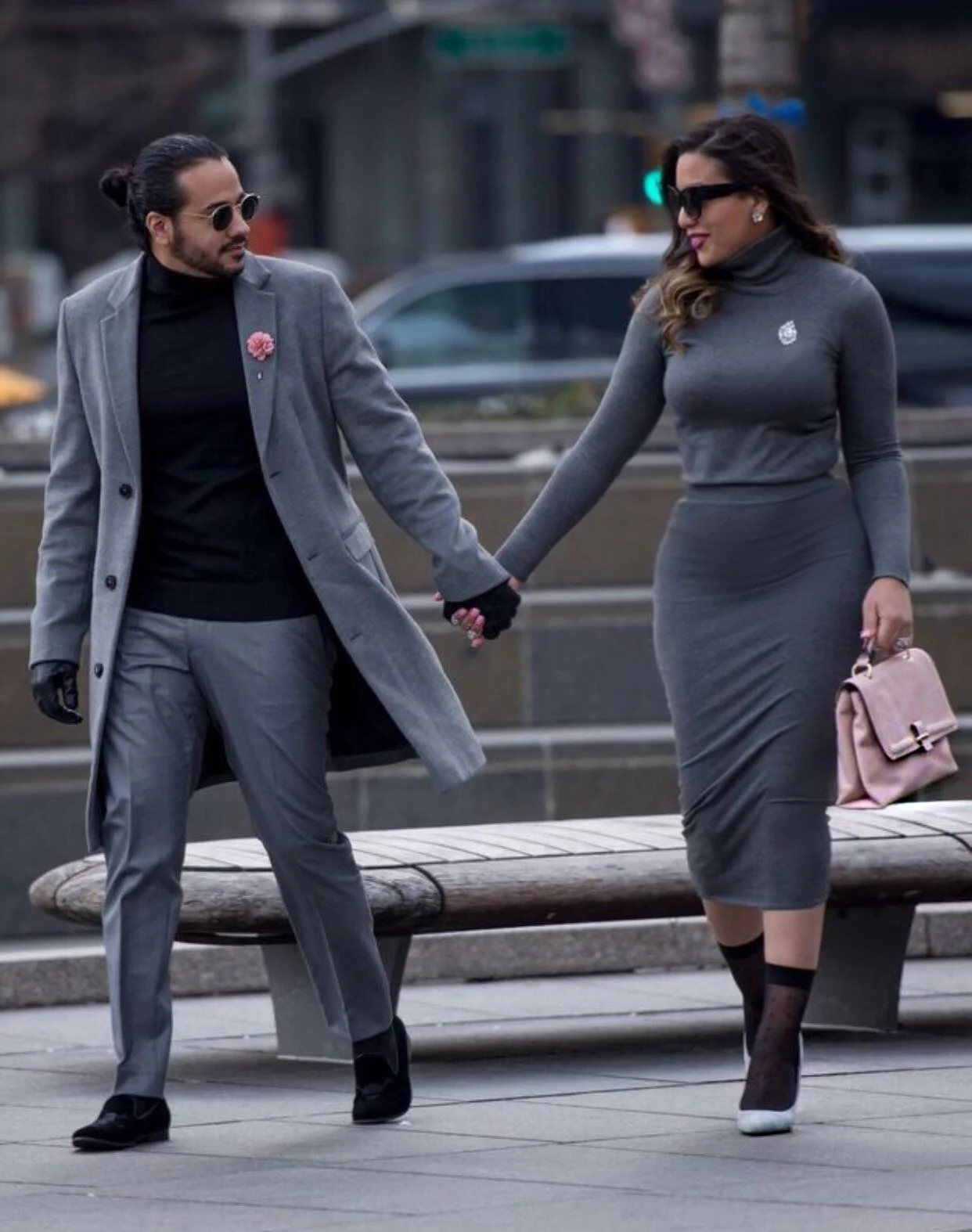 - Monochromatic: is a must of the season especially in grey, black, white and beige. The trick to using it correctly is to wear similar tones and never forget to give a splash of color with either lipstick for Women or a lapel pin for Men.